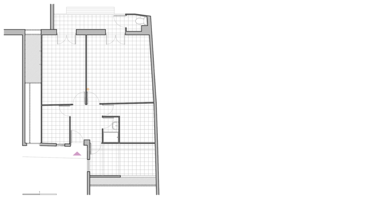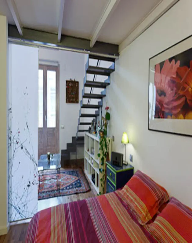 Aquest petit apartament del barri de Sant Pere fou adquirit per una fotògrafa per a la seva rehabilitació. L’ edifici disposa d’un pati central que permet l’accés d’al-