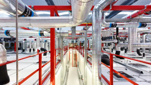 Edifici prefabricat, amb dos tipus de coberta: coberta plana transitable per a instal·lacions i coberta plana no transitable, formada por bigues TAU i coberta de pane-